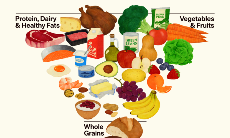 دولت ترامپ از هرم غذایی و رهنمای تغذیهای جدیدی برای امریکاییها رونمایی کرده است که بر «اولویت دادن به پروتئین باکیفیت، چربیهای سالم، میوهها، سبزیجات و غلات کامل» تأکید دارد و در عین حال توصیه میکند از غذاهای بهشدت فرآوریشده و کربوهیدراتهای تصفیهشده پرهیز شود.